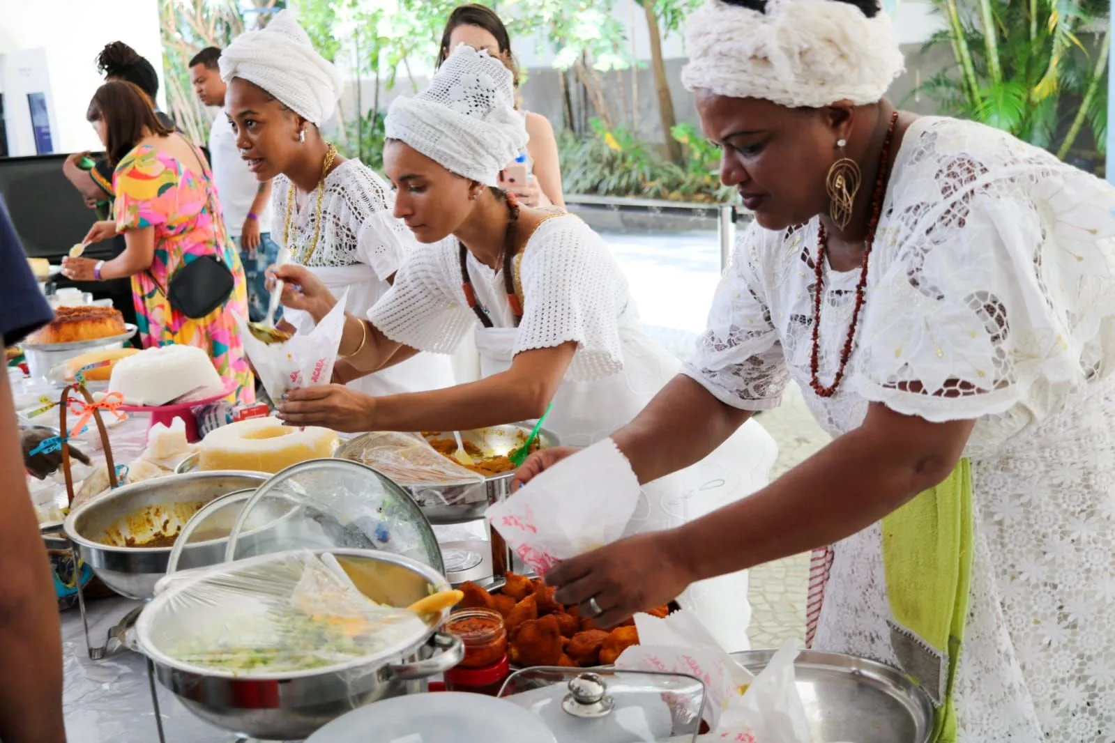 Las Baianas de Acarajé (BA): Icono de la cultura afrobrasileña, cuyo oficio incluye la preparación ritualística de este manjar.