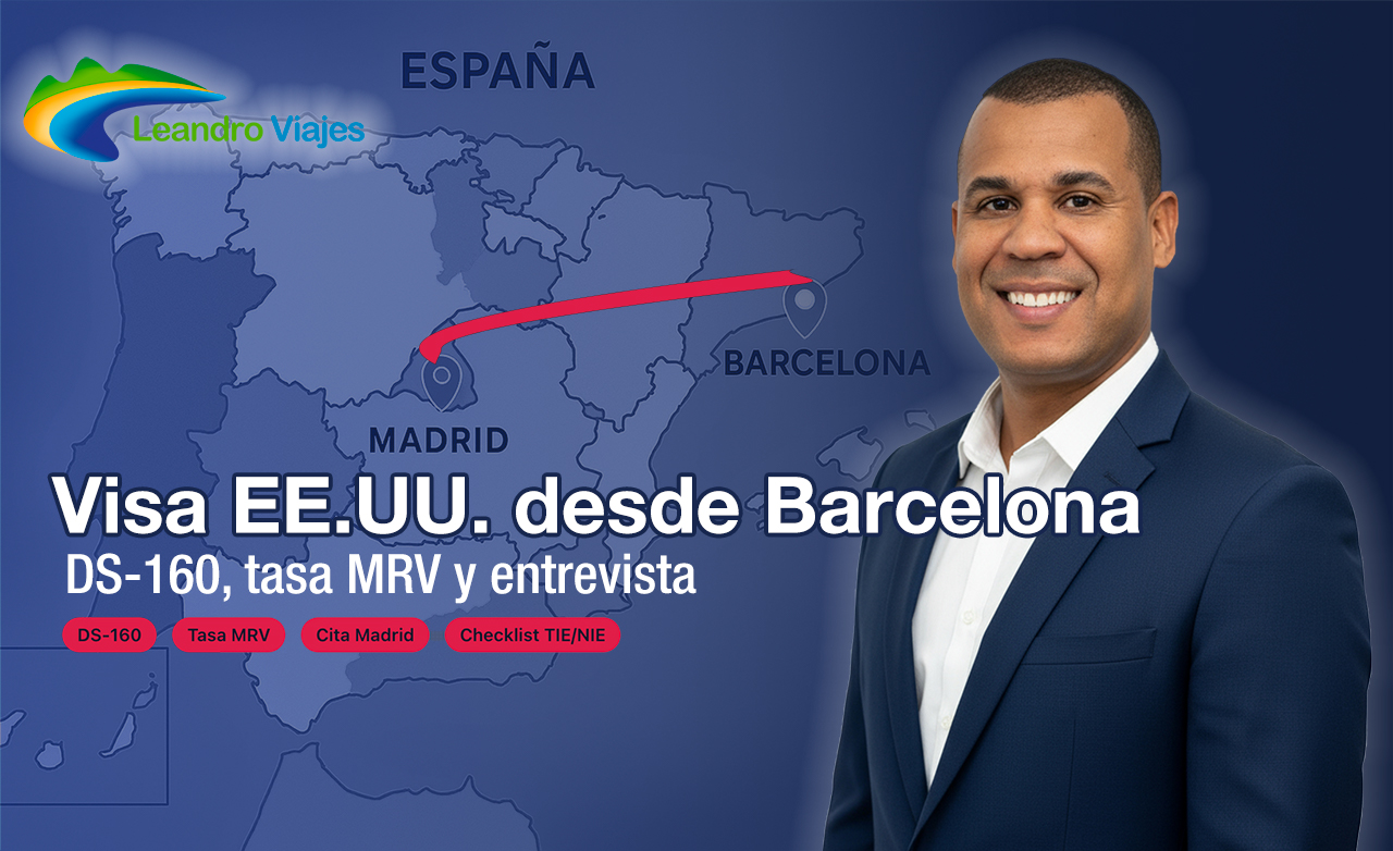 Soy Leandro Mota, CEO de Leandro Viajes. Si vives en Barcelona, no tienes pasaporte español y quieres una visa B1/B2 (turismo/negocios) para Estados Unidos, esta guía es para ti. Aquí te explico el camino oficial (DS-160 → pago MRV → cita de entrevista en Madrid) y, sobre todo, cómo te acompaño para que sea rápido, claro y sin estrés. Muchos clientes me dicen justo eso: que trabajo con dedicación y paciencia y que sienten confianza total durante todo el proceso. Esa es la idea.